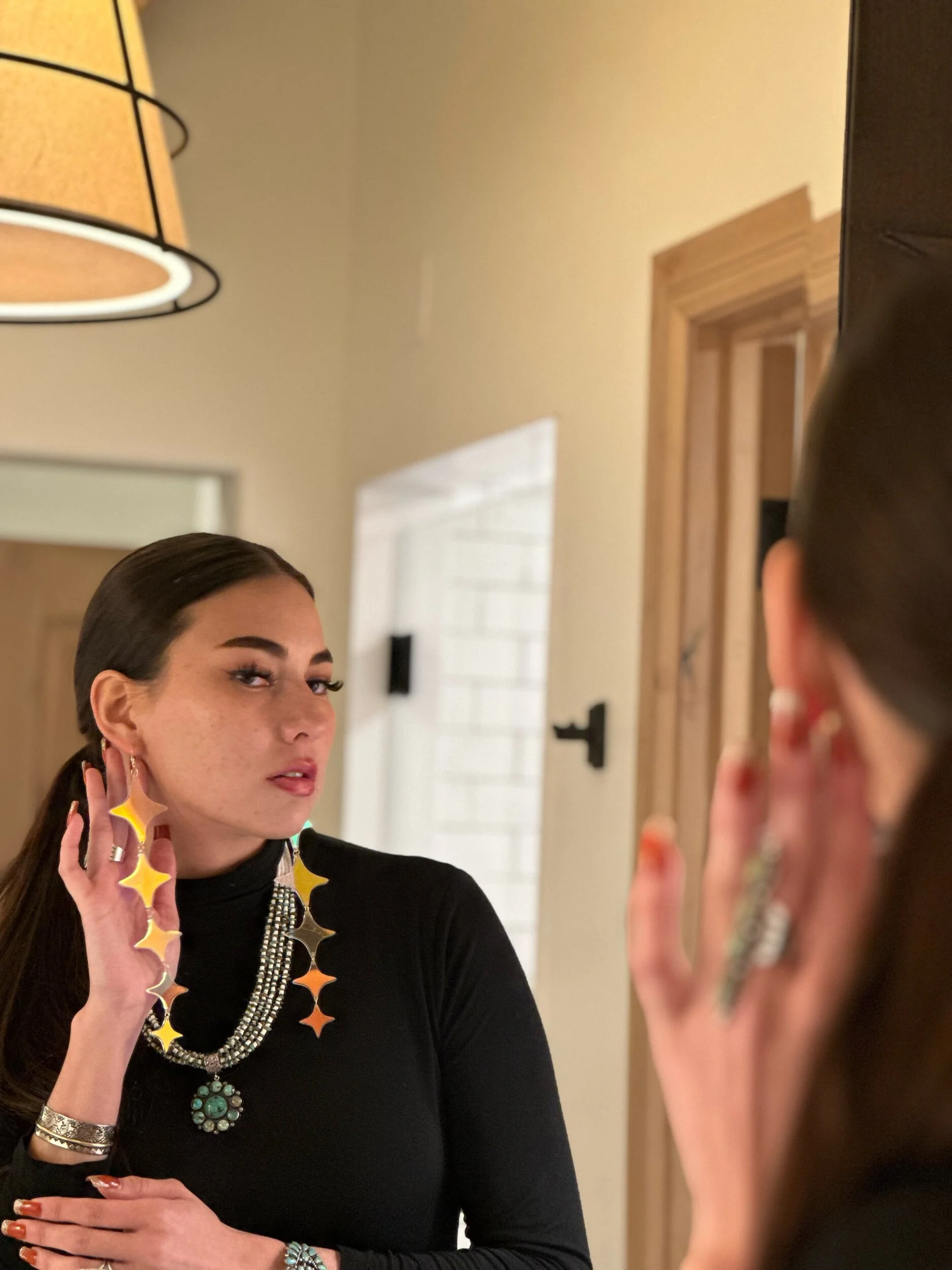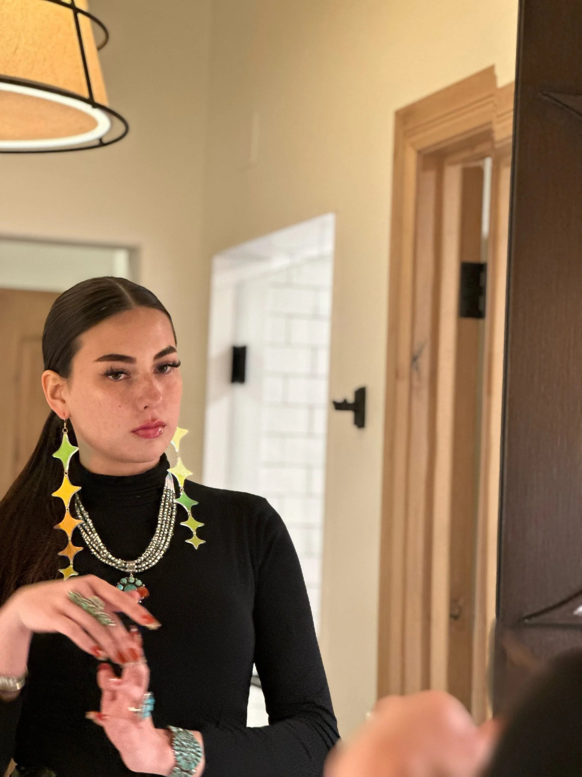 Categories: All Silk Dress Track Suit Jacket Puffer Jackets Bomber Jackets Kaftan Limited Edition Collection Collectors Series: Ultra Limited Swimwear Dress Camp Shirts Ties Skirt Scarves T-Shirts Mens Ranch Shirts All | Silk Dress | Track Suit Jacket | Puffer Jackets | Bomber Jackets | Kaftan | Limited Edition Collection | Collectors Series: Ultra Limited | Swimwear | Dress | Camp Shirts | Ties | Skirt | Scarves | T-Shirts | Mens Ranch Shirts | All Silk Dress Track Suit Jacket Puffer Jackets Bomber Jackets Kaftan Limited Edition Collection Collectors Series: Ultra Limited Swimwear Dress Camp Shirts Ties Skirt Scarves T-Shirts Mens Ranch Shirts Golden Puffer-UNISEX $300.00 War-Chief Silk Halter Dress- Limited EDITION $340.00 Golden Chief Bomber- Ultra Limited- UNISEX $406.00 Merciless Track Suit Jacket, Top Only $220.00 Earth Design Kaftan $210.00 War Chief II, Silk Halter, LIMITED Edition $340.00 War Chief III, Silk SLIP DRESS, LIMITED Edition $340.00 Four Direction Ombre Wrap Dress $180.00 Midnight-Blue Wrap Dress $180.00 Collectors Series: Ultra Limited: Chief Bomber Reversible (Treaty RE-Mix)- UNISEX $505.00 Collectors Series: Ultra Limited: Chief II Bomber UNISEX $409.00 Collectors Series: Ultra Limited: Geo-Brown-Bomber UNISEX $409.00 Puffer Jacket- Horse New $300.00 Limited Edition: Halter neck Silk Dress: Brown Geometric $340.00 Halter Dress Silk- New Vibe (With Train) $340.00 Halter Dress Silk- Pink Miami (With Train) $340.00 Halter Silk Dress- Deer Horns (No Train) $340.00 4 Direction Cross halter Ombré Dress (No Train) $340.00 Cross Unisex Tracksuit $220.00 Cross Men’s Bottom $80.00 Honor Chief Unisex Tracksuit sale Sold Separately $220.00 Men’s Short with One side Pocket $80.00 Ultra Limited Silk Dress, New Southwest $440.00 Limited Edition Collection: Treaty RE-MIX - Silk Halterneck Dress with Train $340.00 Custom Long Sleeve Button Down Dress: Geometric $180.00 Scout-Cardigan Tan $180.00 Lantern Sleeve Dress with Pockets-Geometric $120.00 Lantern Sleeve Dress With Pockets- Multi Pattern $120.00 Tie Back Halter Neck Flared Dress Red Ombre $110.00 "Morning Star" Earrings $65.00 Earth & Sky Earrings $65.00 Hummingbird Flight Earrings $65.00 Running Horse Earrings $65.00 Sold out Limited Edition Collection: "Summer" Halterneck Silk Dress With a Train $340.00 Limited Edition Collection: "New Dream" Halterneck Silk Dress No Train $340.00 "Summer" Kaftan Dress Silk Dress (2 Sizes) $320.00 Limited Edition Collection: "New Warrior" Silk Slip Dress $320.00 Morning Star Pattern Women's One-Piece Swimsuit - Stylish & Trendy Swimwear for Summer Fun $60.00 "Inspo" Strap BodyCon Green/Red $160.00 "Inspo" Strap BodyCon Pink-Light Magenta $160.00 "Horizon" Multi-Color Bodycon (Distressed) $125.00 "Fearless" One-Piece Swimsuit, Classic Cut Bottom- LIMITED EDITION $120.00 Blue Solstice Pleated Dress $240.00 Horizon Pleated Dress $240.00 Red-Line A-Line Dress $180.00 Demure Cover-Up with Pockets $180.00 Red Line Dress - sleeveless - belt not included $240.00 "Deer III" Long Sleeve Dance Dress (Main) $140.00 "The Huntress Track Suit" $240.00 Red-Line Track Suit with Pockets $240.00 Warrior Skirt with Pockets $160.00 Horizon-Ombré Blue/Green gradient Bodycon (each item is unique) $160.00 Horizon-Ombré Red/Blue gradient Bodycon (each item is unique) $160.00 "Horizon" Red Turtleneck Bodycon $170.00 "The Matriarch Power Suit" Sets $260.00 "Victory" Magenta Ombre Dress $280.00 "Victory" Blue/White Dress $280.00 "Victory" Blue/Orange Dress $280.00 Red-Line Power Suit Set $260.00 Sold out Red-Line blouse $160.00 Red-Line long sleeve dress Belt not included $240.00 New Obsidian Black long Dress $240.00 New Vogue Long Bubble dress with pockets $220.00 "Fire & Shadow" Men's Camp Shirt (Main) $120.00 "Red Horizon" Men's Camp Shirt (Main) $120.00 "Raven Noir" Men's Camp Shirt (Main) $120.00 "Dark Horse" Camp Shirt (Main) $120.00 "Merciless" Men's Camp Shirt (Main) $120.00 "Resistance: Deconstructed America" Men's Camp Shirt (Main) $120.00 "The Old Ways" Men's Camp Shirt (Main) $120.00 “Spode Cascade Deconstructed Dress” long Shape Dress with Pockets $240.00 The Harvest Hoodies $160.00 Power Line Blouse $120.00 "Sky-Tie" $80.00 “Valor” long Shape Dress with Pockets $200.00 “Dawn” Southwest Peach Tencel Dress with Pockets $180.00 “Guardian” Cover-Up Dress with Pockets $180.00 "The Ember Deconstructed Bubble Dress" XTRA Short $180.00 "The Vanguard Blouse" $160.00 Moda II Dress with Pockets, Green Small Print $140.00 Moda II Dress with Pockets, Blue with Small Print $140.00 Moda II Dress with Pockets, Orange Small Print $140.00 "Sky-Eagle Pinnacle" One Size Wrap Dress Orange and Teal $220.00 "New Sunset" Tencel Dress: Reds and Blues $280.00 "New Sunset" Tencel Dress: Purple and Yellow $280.00 "New Sunset" Tencel Dress: Reds $280.00 "Ace-High II" Ranch-Shirt, Multi Color: Browns $170.00 "Ace-High II" Ranch-Shirt, Multi Color: Blues $170.00 "Ace-High II" Ranch-Shirt, Multi Color: Reds & Blues $170.00 "Sky-Tie" Orange $80.00 Turquoise Bottom Heel with Custom Print $230.00 Red Bottom Heel with Custom Design $230.00 Classic Turquoise Pumps $230.00 Classic Red Pumps $230.00 "Ace-High" Ranch-Shirt, Multi-Color $160.00 "Ace-High" Ranch-Shirt, Light Multi-Color $160.00 "Ace-High" Ranch-Shirt, B&W $160.00 "Ace-High" Ranch-Shirt, Portraits $160.00 "The History Maker" Honorable Secretary Deb Haaland $80.00 Sky-Eagle Fashion eGift Card from $25.00